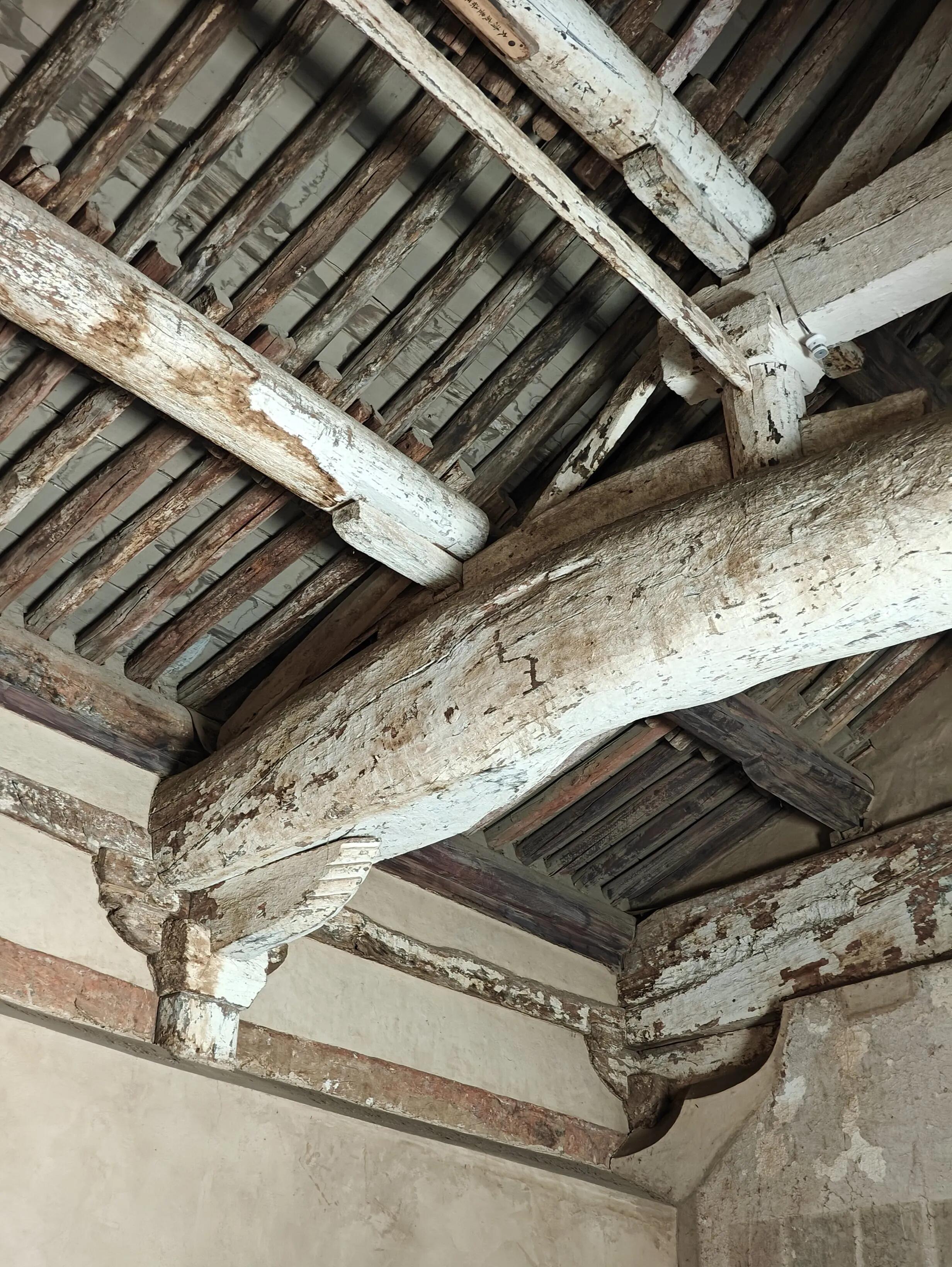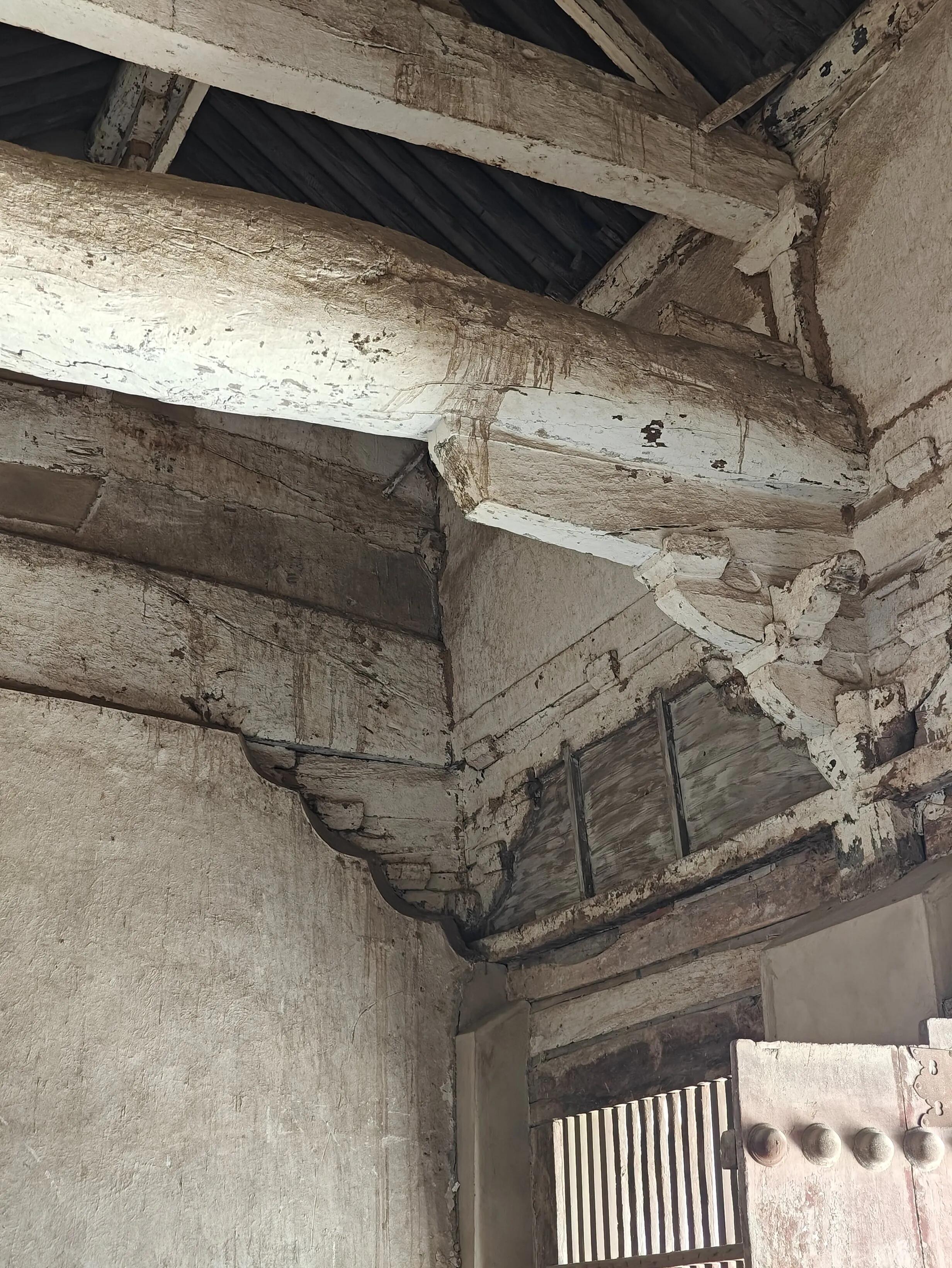 踏入前万户汤王庙,首先映入眼帘的是大殿。这座面阔三间、进深四椽的建筑,带着单檐悬山顶的质朴模样。不同于华丽繁复的宫廷建筑,它以简洁大气的线条,勾勒出元代建筑特有的雄浑与沉稳。抬头细看,柱头斗栱是五铺作单抄双下昂的样式,还出了30°和60°斜栱,这些斜栱像精巧的几何拼图,层层叠叠,既分担了屋顶的重量,又增添了建筑的韵律感。补间斗栱则是四铺作单抄单下昂,昂形耍头俏皮地探出,像是在和人打招呼。走进殿内,梁架结构清晰可见——前乳栿对四椽栿通檐用三柱,看似简单的架构,却蕴含着古人对力学与美学的精妙把握,历经数百年风雨,依然稳稳支撑着这座建筑。