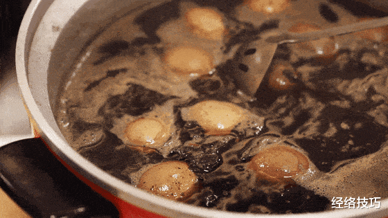 用勺子背轻轻地把蛋壳敲出均匀的裂纹,这样就方便入味。加入盐和生抽调味之后,接着用小火煮20分钟,关火之后让鸡蛋在汤里自然浸泡到凉,那样味道以及透达效果会更很多。
