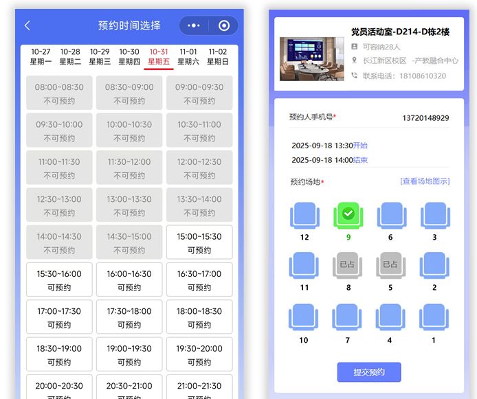 高校实验室/活动室:学生预约后未使用,系统自动释放供其他同学使用,提高稀缺资源周转率