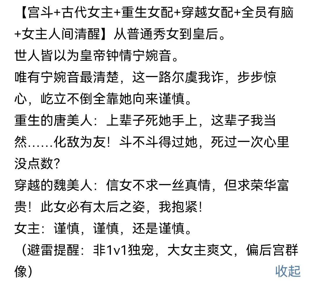 谨慎贵妃VS冷血帝王,算是无cp大女主升级爽文,后宫宫斗群像沙雕文,高质量好文,强推!