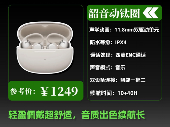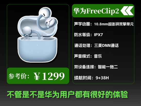 价格:1099 元推荐理由:戴着稳又轻,音质有现场感,鸿蒙手机用着更方便,预算够选它没错。