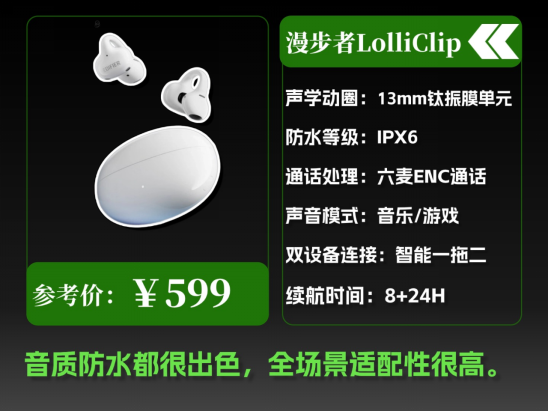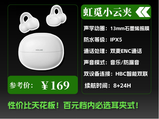 价格:169 元推荐理由:百元价位耳夹式耳机性价比天花板