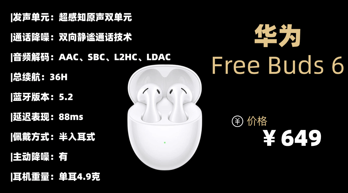 品牌3:华 为F reeBuds 6蓝牙耳机