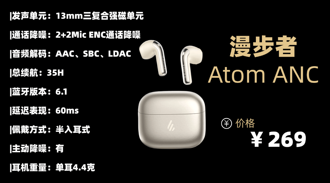 品牌5:漫 步者A tom ANC蓝牙耳机