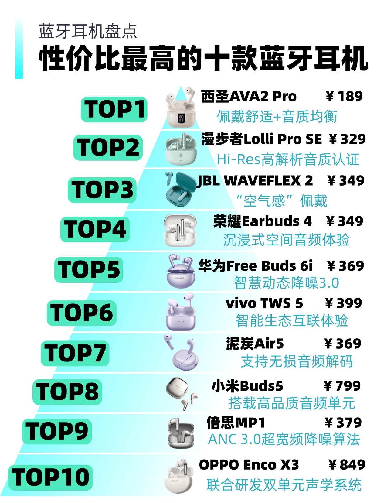 蓝牙耳机怎么选择比较好?接下来,我将结合本次的实测数据,为大家详细介绍这蓝牙耳机排行榜前十名性价比排行榜。