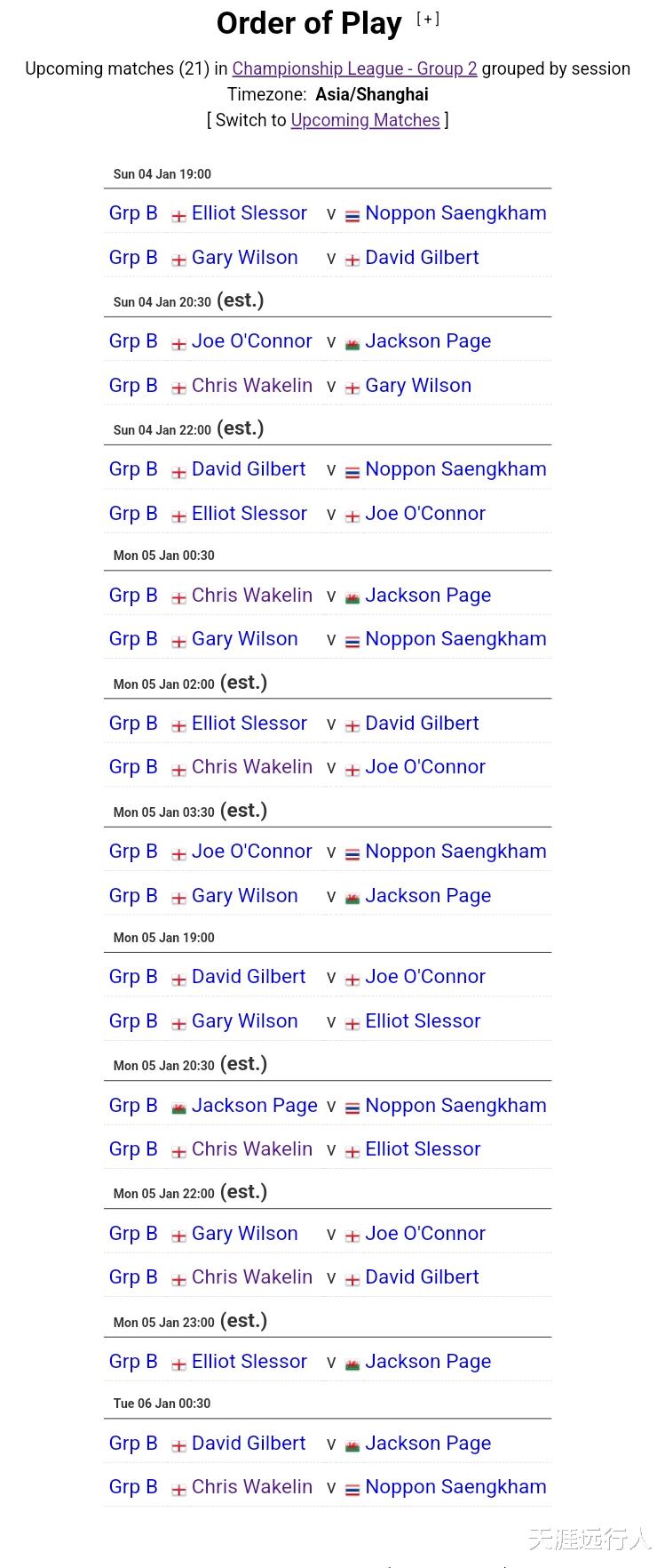 斯诺克冠军联赛邀请赛版第二小组循环赛完整赛程