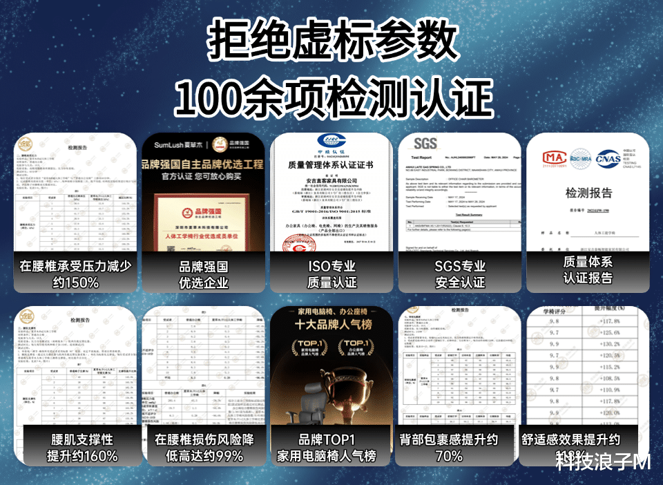 SumLush死磕“行业旗舰级人体工学椅”有多疯狂?对每一款新产品进行200多项极限测试标准,确保每个细节无懈可击。同时,邀请了1000+腰椎患者进行真实使用测试,实时发现潜在的安全隐患与问题并进行改进。因此,在品质控制和用户体验方面,夏草木人体工学椅无疑成为行业性能最强的王者。
