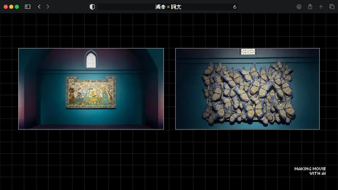 即使最近 Flow 上线的新多参功能,我们也试过,它也很难保证我们要的展品不变。我们需要稳定的主体太多,包括多件展品、猫、蝴蝶,所以最后还是首尾帧套路更稳。