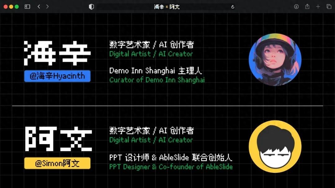 大家好,我们是海辛和阿文。我们是数字艺术家,也是一对和AI一起创作的搭档。
