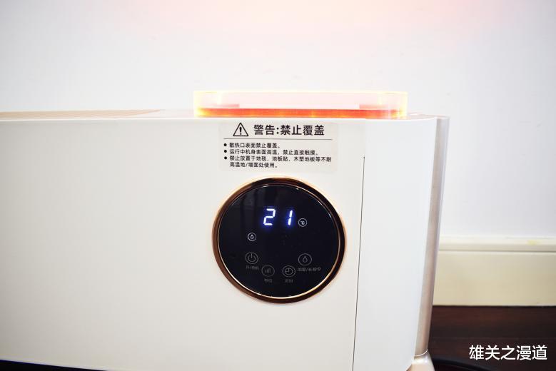 面板右侧的触控屏,可以直接设置温度档位、开启加湿、定时等。另外,遥控器也是控制取暖器的方式之一,冬天省得跑来跑去。