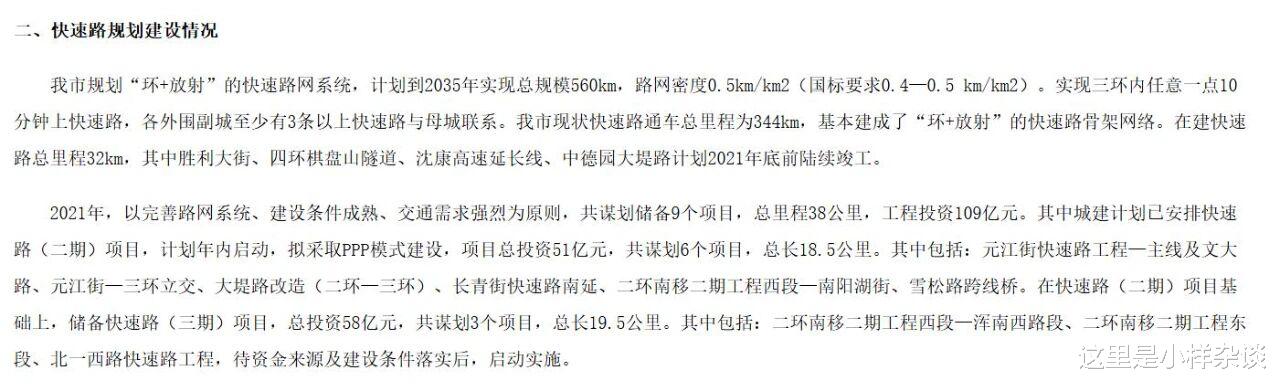 当时计划在快速路二期完成后,进行的是储备快速路(三期)项目,总投资58亿元,共谋划3个项目,总长19.5公里。其中包括:二环南移二期工程西段—浑南西路段、二环南移二期工程东段、北一西路快速路工程,待资金来源及建设条件落实后,启动实施。