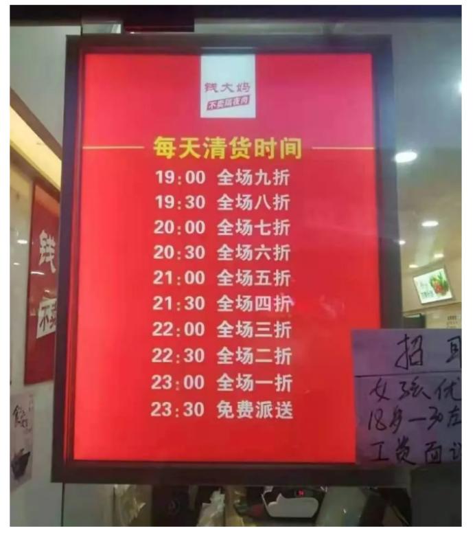 加盟商再照着总部制定的价格和流程卖货,每天傍晚开始“阶梯式”打折,晚上甚至会出现不要钱免费送菜的情况。