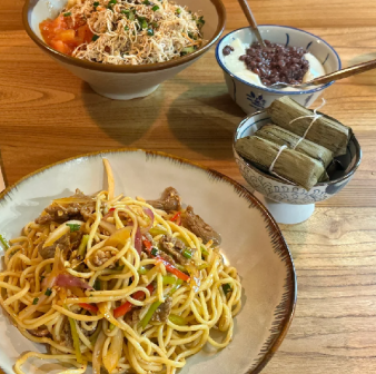 鸡丝拌面和牛肉拌面都挺好吃的,还有甜豆花和甜粑粑,甜粑粑长得像小粽子一样,里面是甜甜的糯米~