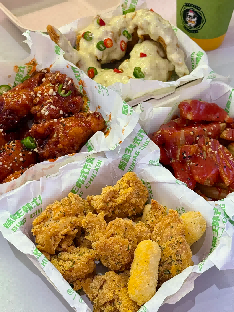 屋里都是炸鸡的香味芝士球,艮啾啾的,芝士粉给的多,juju香炸鸡口味很多,基本哪个都好吃,外酥里嫩的。