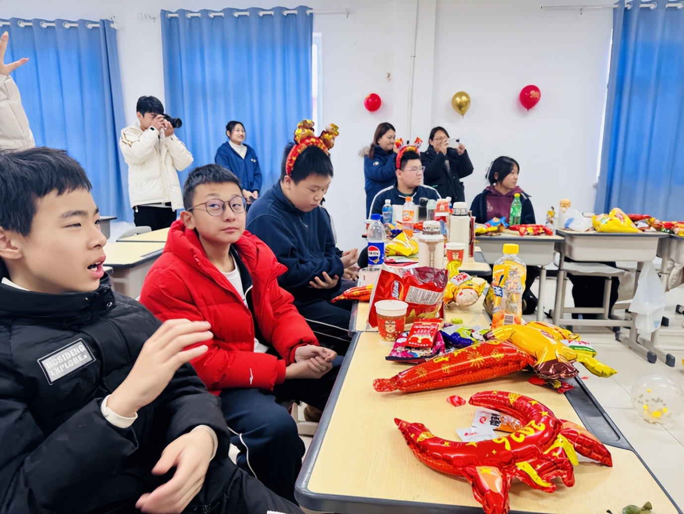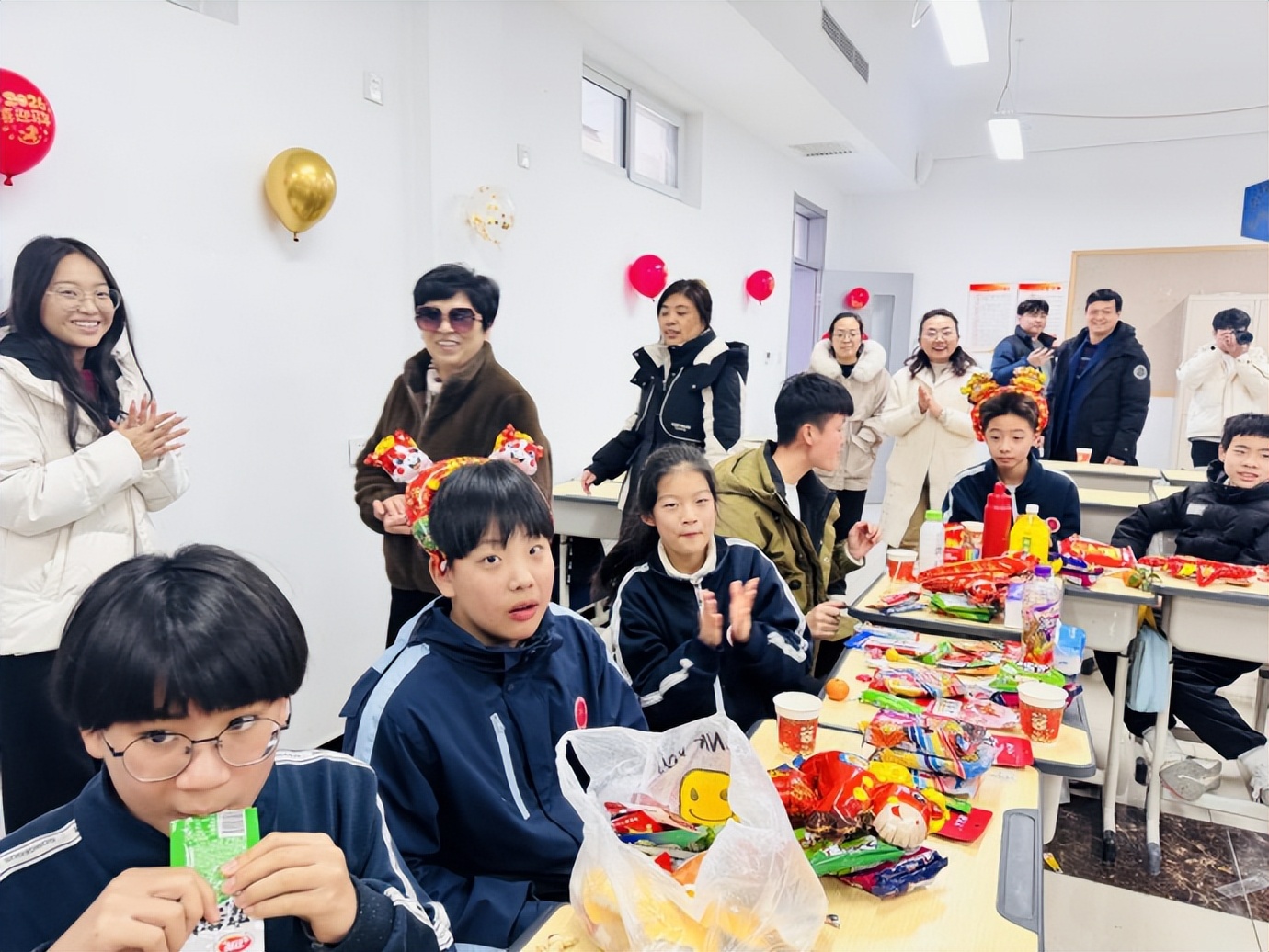 联欢接近尾声,同学们分享着零食,畅谈着过往与未来,教室里的笑声、歌声、祝福声交织成最动人的新年序曲。