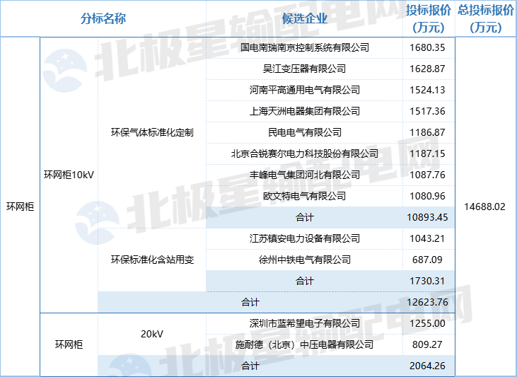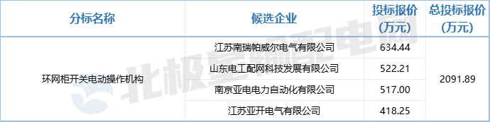 许继电气旗下有5家企业入围,分别是河南许继电气开关有限公司、许继德理施尔电气有限公司、许继电气股份有限公司、珠海许继电气有限公司、许继电源有限公司,投标报价共计约13249.73 万元。