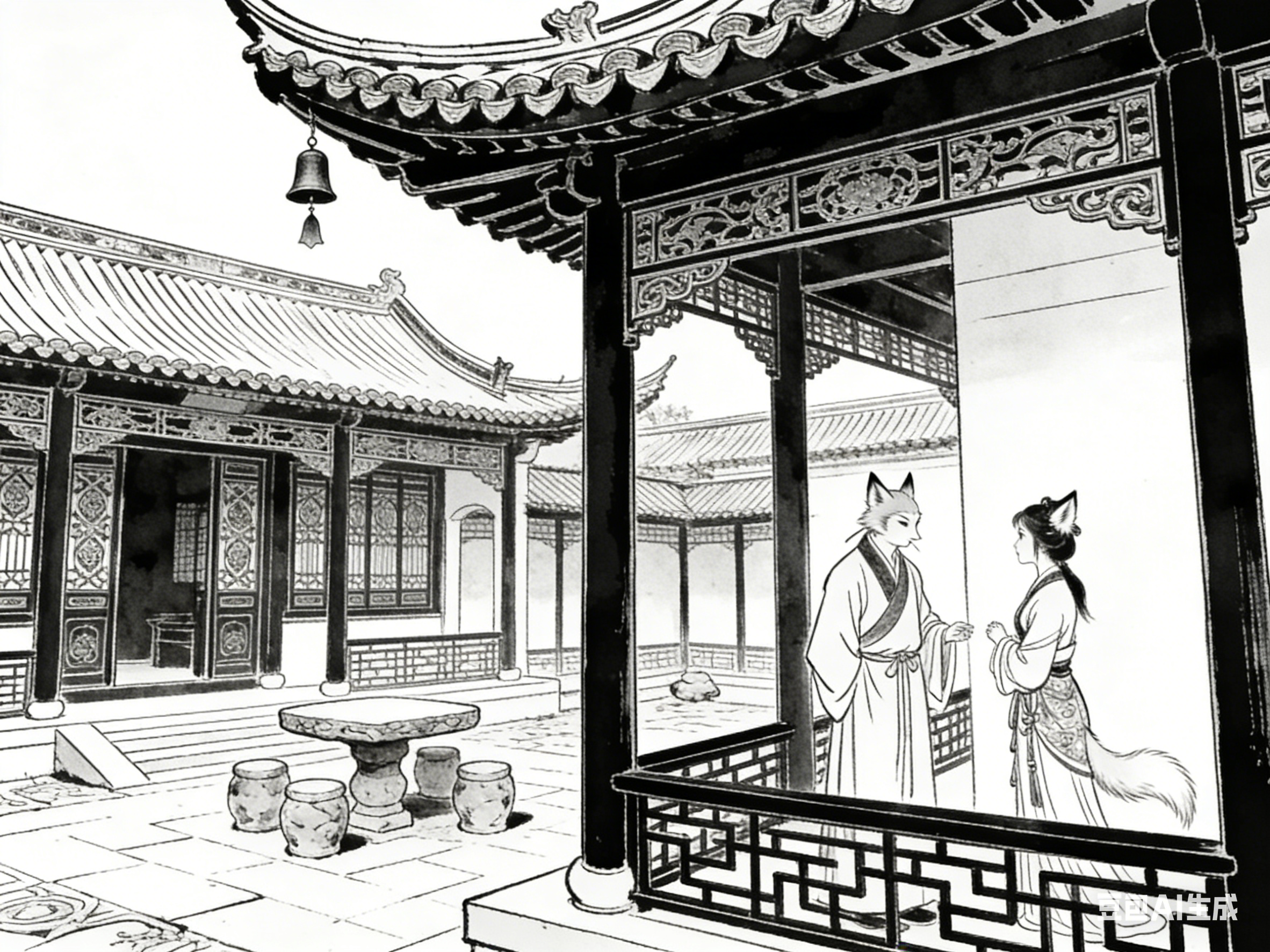 聊斋中的古院,最突出的特征是“边界模糊”。院墙看似隔绝内外,却挡不住狐鬼妖仙的穿行,成为人间与灵异世界的过渡地带。白天,古院是人间居所,充满烟火气;夜晚,院墙的边界消失,灵异事件悄然发生,古院成为人鬼狐妖共生的空间。