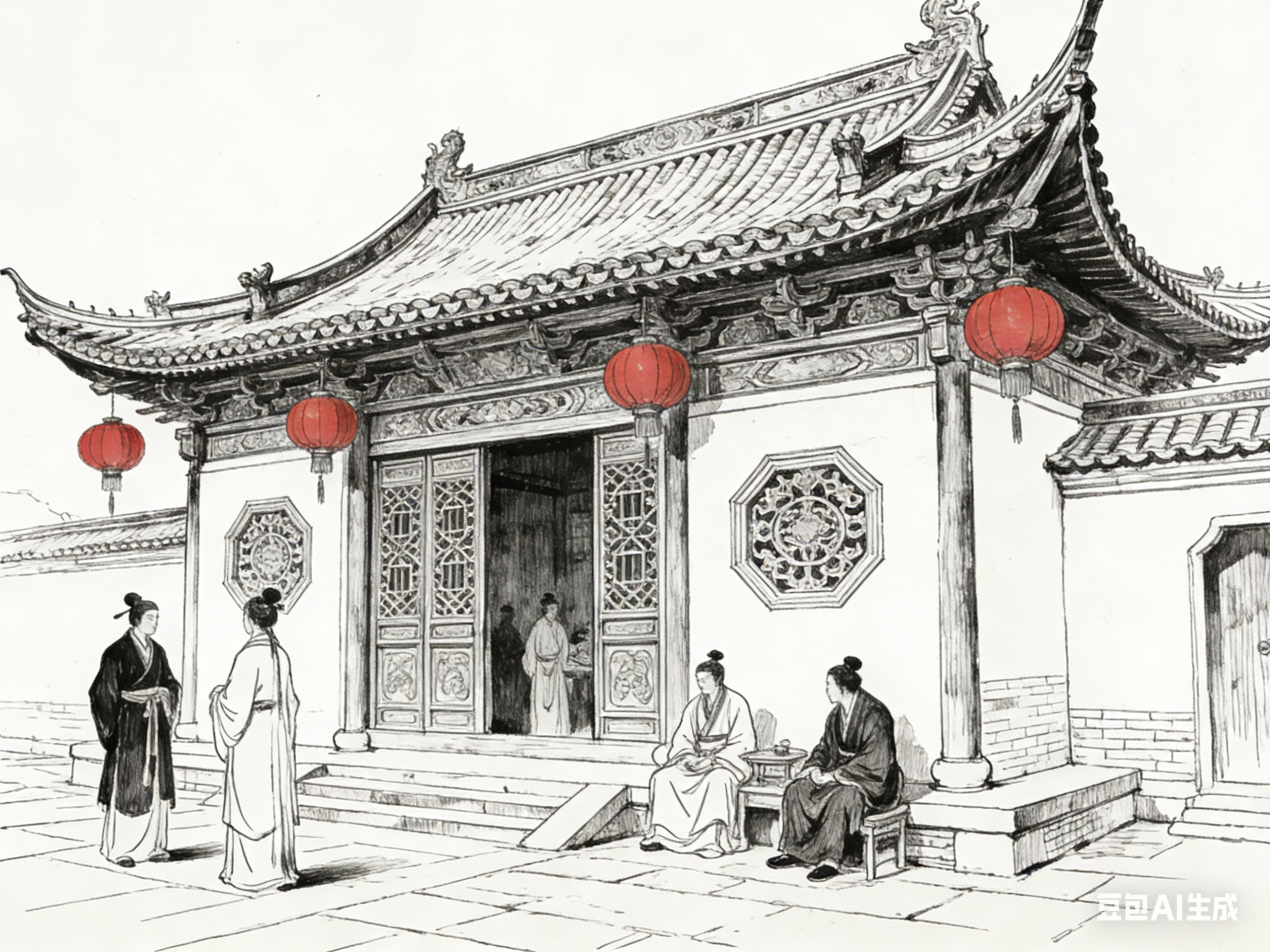 祠堂是《聊斋志异》中极具伦理色彩的特殊古建,是明清时期宗族祭祀、议事的场所,多为青砖灰瓦,殿宇庄严,供奉着祖先的牌位,承载着宗族的荣誉与伦理规范,其意象内涵与封建伦理、宗族观念紧密相关。
