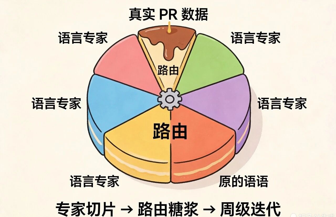 简单来说,它把专家划分成语言切片,Rust专家仅仅专注于Rust,Go专家专门钻研Go,就好像印度斯坦航空给每一架飞机配备专属的“坠机专员”。
