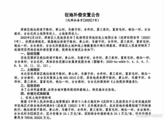 (图片来源于网络)根据可研批复,将在沈阳桃仙机场现有跑道南侧2140米处新建一条3600×45米的新跑道,新的“二跑”与现有跑道错开1000米,将新建98个机位,整体飞行区等级为4E,同时新建一万平的国内货运站。“二跑”项目为2035年为近期目标,建成后满足年旅客吞吐量4500万人次、货邮吞吐量40万吨,飞机起降31.1万架次的运行需求。在可研批复后,各相关的招标也开始了,同时最重要的征地拆迁工作也终于开始了,在进行了各种前期摸排工作后,沈阳桃仙机场第二跑道项目征地补偿安置公告也公布了。