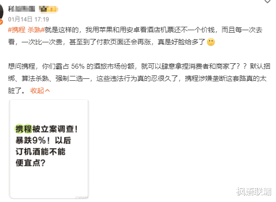 携程显然在杀熟,割老用户的韭菜;