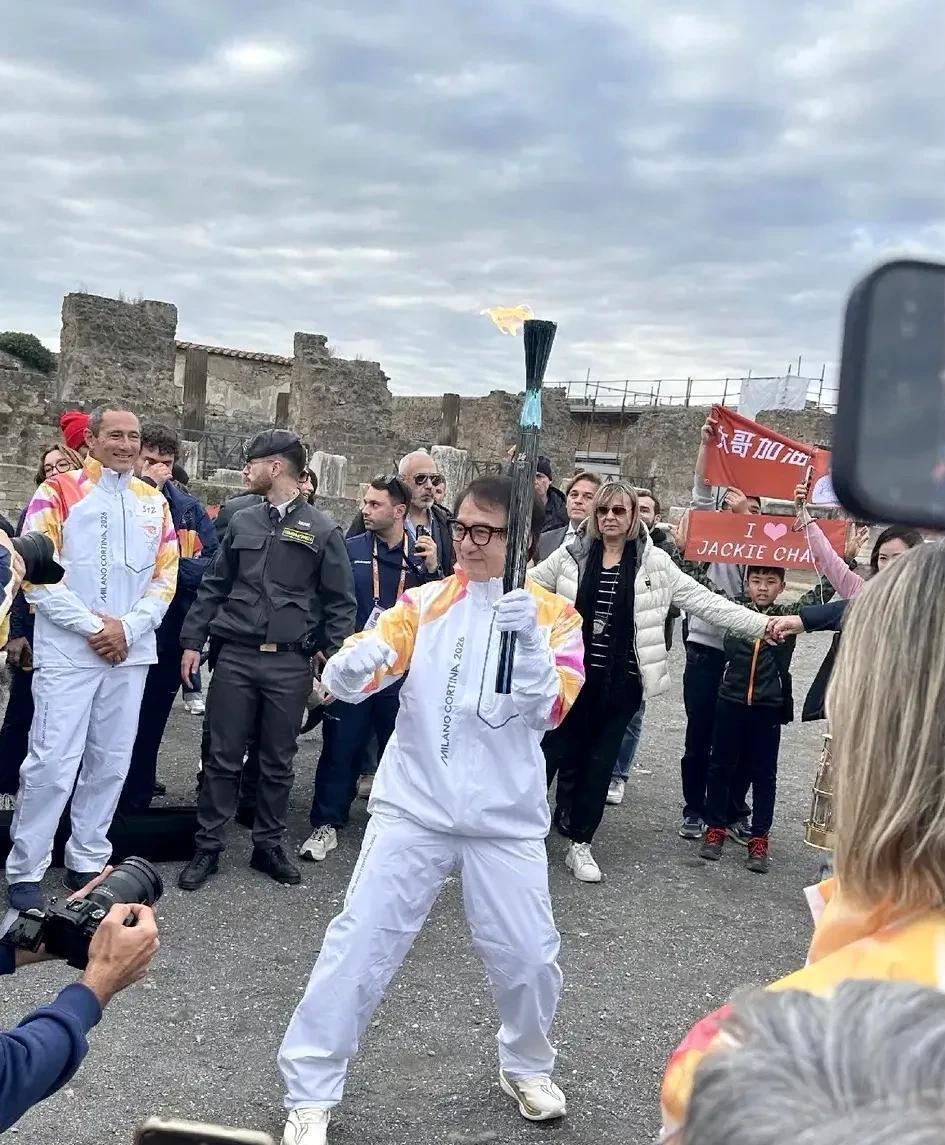 12月22日,71岁的国际影星成龙现身意大利庞贝古城,作为火炬手参与了2026年米兰-科尔蒂纳冬奥会的火炬传递活动。 身着火炬手制服的他头发虽已花白,但步伐稳健,笑容灿烂,面对现场游客的欢呼频频挥手致意。 在千年古城的映衬下,他手中的火炬火焰显得格外耀眼。