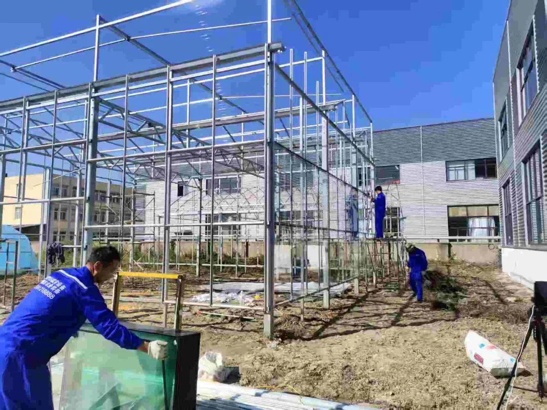 因此,温室的主体骨架(包括立柱、横纵梁等)必须有足够的强度和刚度,以承受玻璃的重量、当地最大的风荷载和雪荷载。