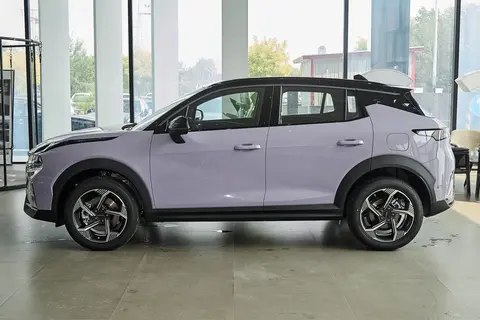 车身侧面线条流畅自然,双色车身设计增添了不少运动气息。熏黑车顶与外后视镜、轮拱的黑化处理相得益彰,符合年轻消费者的审美偏好。车身尺寸适中,既保证了内部空间的实用性,又确保了城市驾驶的灵活性。