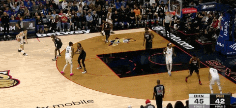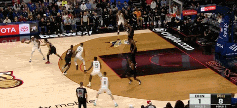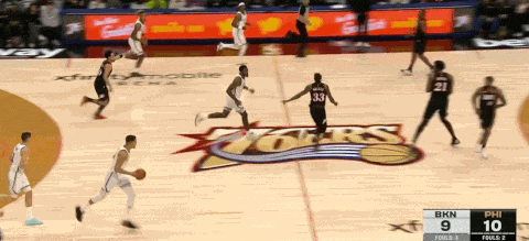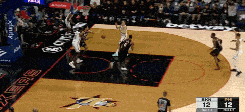 克罗尼防守端迫使对手失误后,篮网形成反击,MPJ迅速拉开空间至右路,和杰明、夏普形成三线反击,夏普的中路快下使得MPJ完全收获空位机会。