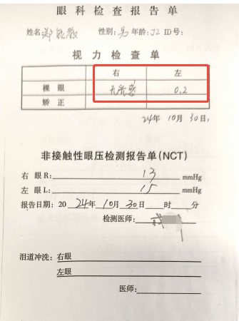 工伤后突患眼疾,视力骤降失劳动能力谁也未曾想到,更大的打击正在悄然降临。2024年10月3日,也就是骨折后的第三天,郑能教突然感到右眼模糊不清,短短5小时后,这只眼睛竟完全失去光明。雪上加霜的是,10月8日起,左眼视力也开始持续下滑。对于靠体力和视力谋生的郑能教而言,这无疑是灭顶之灾。