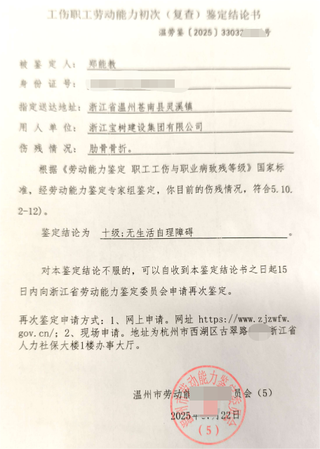 当事人诉求明确,盼重新鉴定获合理赔偿如今,52岁的郑能教失去了劳动能力,生活陷入困境,他的诉求质朴而迫切:恳请相关部门能给予关注和协调,推动宝树公司配合进行全面的伤残重新鉴定,明确眼部疾病与工伤的因果关联及当前真实伤残等级;依据最终的鉴定结论,获得应有的合理赔偿,以支撑后续的治疗和基本生活。