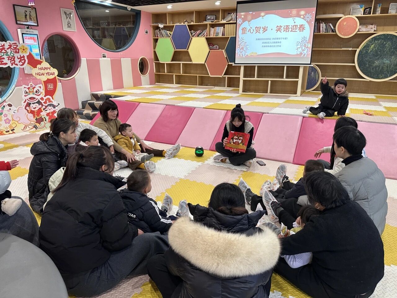 绘本阅读环节,沈老师手持《过年啦》绘本书,用生动形象的语言、丰富鲜活的表情,搭配恰到好处的手势,缓缓向亲子家庭讲述着藏在绘本里的年俗故事。讲述过程中,老师结合“贴春联”“包饺子”“放鞭炮”“守岁”等孩子们易于理解的春节情境,适时抛出提问,“快过年啦,这几天小区里有没有听到放鞭炮的声音?”、“这是红包,大家有没有收到过?”,引导孩子们主动思考、大胆表达。