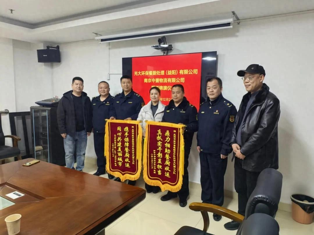 12月24日,光大环保餐厨处理(益阳)有限公司、南京中誉物流有限公司负责人,将两面锦旗送至市城管执法支队赫山大队,致谢大队2025年在餐厨垃圾规范处置监管执法工作中给予企业的支持与配合。