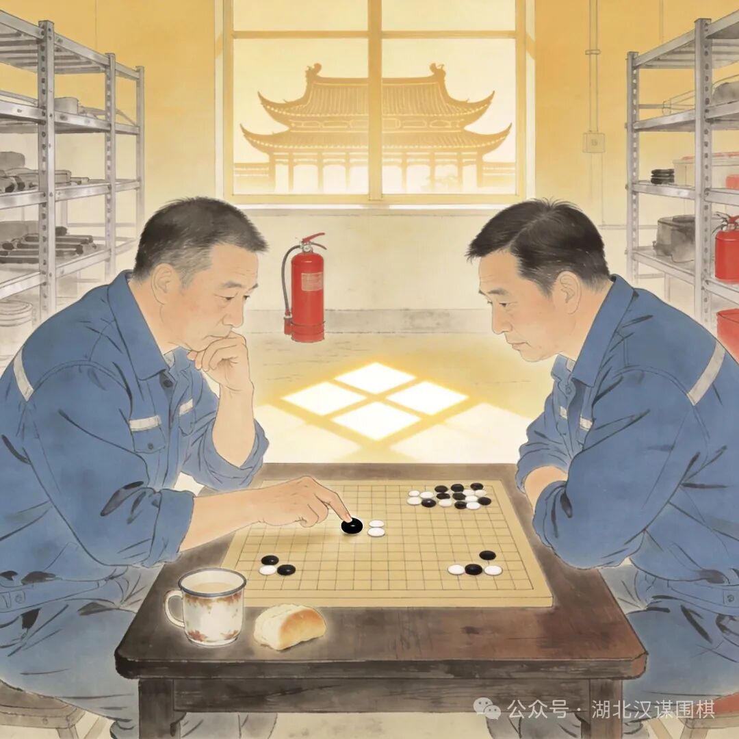 职工围棋赛场景:车间休息时的智慧对弈
