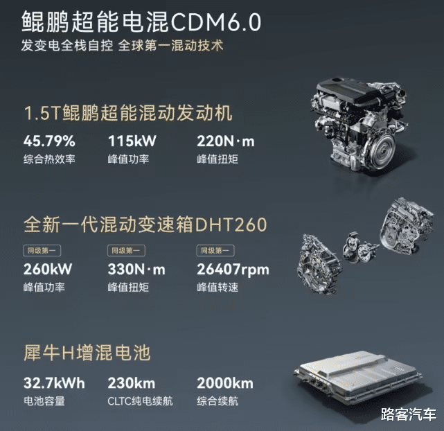 性能与节能方面,风云T9L搭载奇瑞最新一代鲲鹏超能电混CDM 6.0系统,1.5T混动专用发动机热效率达45.79%,系统综合功率550kW,零百加速迈入5秒级,馈电油耗低至3.9L/100km,综合续航突破2000km,彻底兼顾性能与经济性。同时配备飞鱼底盘、CDC电磁悬挂与雪豹智能四驱系统,6+1种全地形驾驶模式,适配各类路况,辅以磐石车身架构与全方位电池安全防护,筑牢全家出行安全防线。