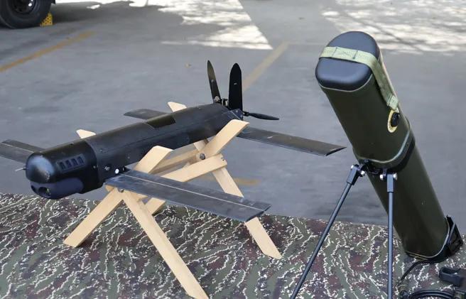 该无人机为单兵便携的小型游荡弹药,可挂载于军舰、车辆等平台,主要用于打击小型目标。