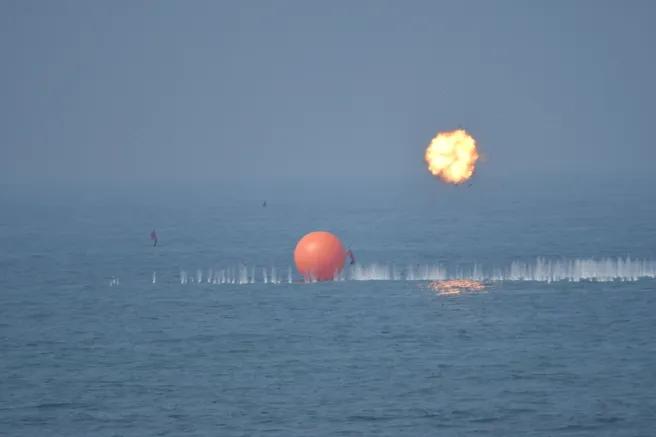随后陆战队从陆上补射一枚,并从艇上发射一枚,两枚均成功命中海上球靶并引爆。
