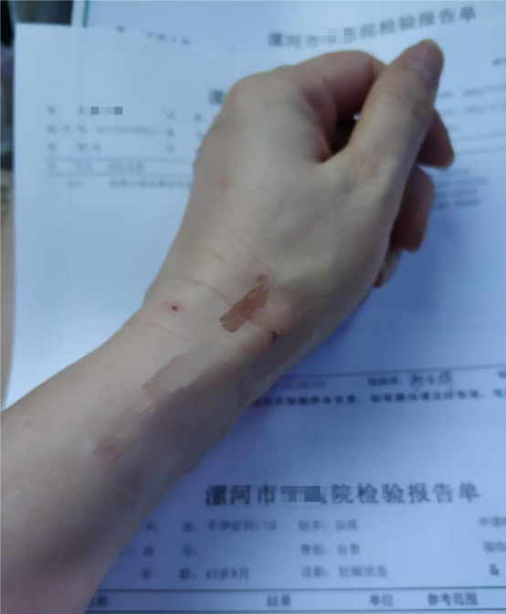 当时张女士正在与家人通电话,宋某以笔没水为由向她借笔,在毫无防备的她转身取笔的瞬间,十几名便装人员突然冲入家中,一场毫无预兆的暴力执法就此开始。治安大队长李某(事后得知)径直上前,将她狠狠摁倒在床沿,面对她本能护腹的举动,对方反而强行反扭其双手、抢夺手机,剧烈的外力冲击下,张女士下体当场出血,她大呼自己已怀孕,不要打她。