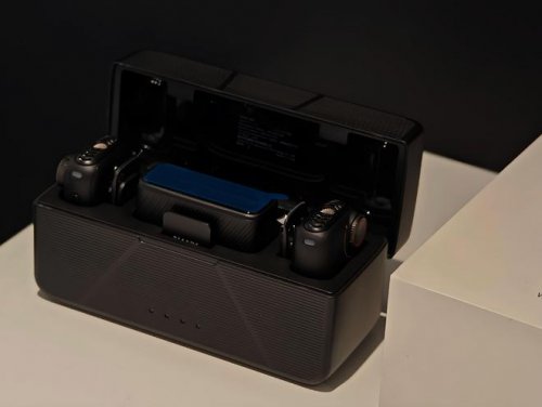 将关机后的发射器和接收器按照充电仓内的卡槽形状,轻轻放回并确保充电触点对准。盖上仓盖,让充电仓自动为其补充电量,保持电池活性,同时起到防尘、防震的保护作用。