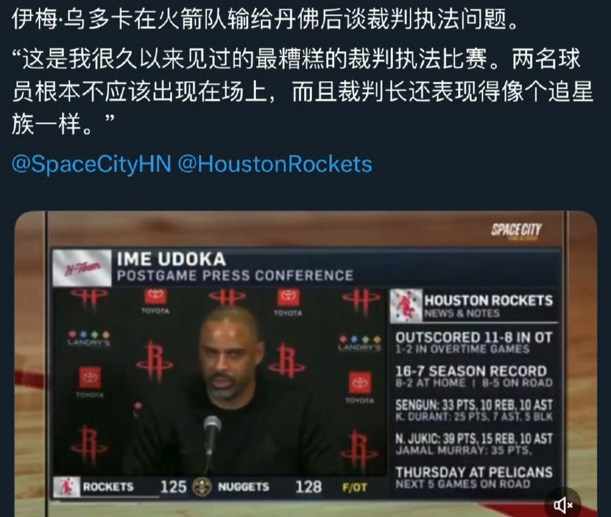 NBA出具了掘金与火箭赛后的裁判报告,报告对第四节最后2分钟,以及加时赛最后2分钟的吹罚,做了解释,一共提到了4次吹罚,火箭吃亏整整3次,怪不得主教练乌鲁卡在赛后会暴跳如雷,事实证明,错的就是错的,根本不需要裁判报告来解释!