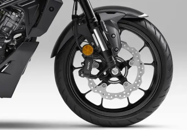 而刹车方面,同样是本田惯用的高标准,前日清NISSIN辐射四活塞卡钳+296mm浪花盘,后单活塞卡钳配220mm单盘。
