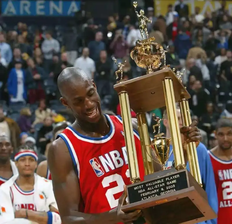 最终,西部全明星队以155比145战胜东部全明星队。赛后的颁奖仪式上,NBA总裁大卫·斯特恩先是隆重致敬了乔丹的传奇职业生涯,随后还是将全明星赛MVP的奖杯,颁给了全场表现最出色的加内特。那个为乔丹量身定做的AMVP奖杯,最终没能送到乔丹的手上。