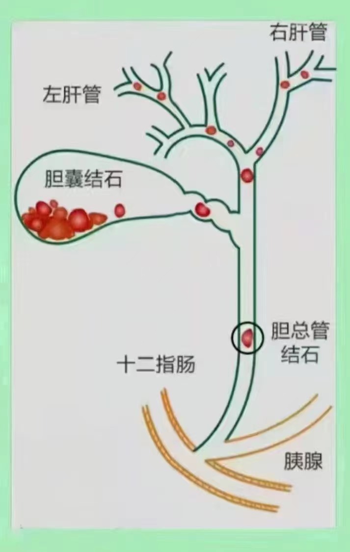 1:肝脏分泌的胆汁异常,胆汁均衡失调,从而在胆囊内,肝管内同时形成结石