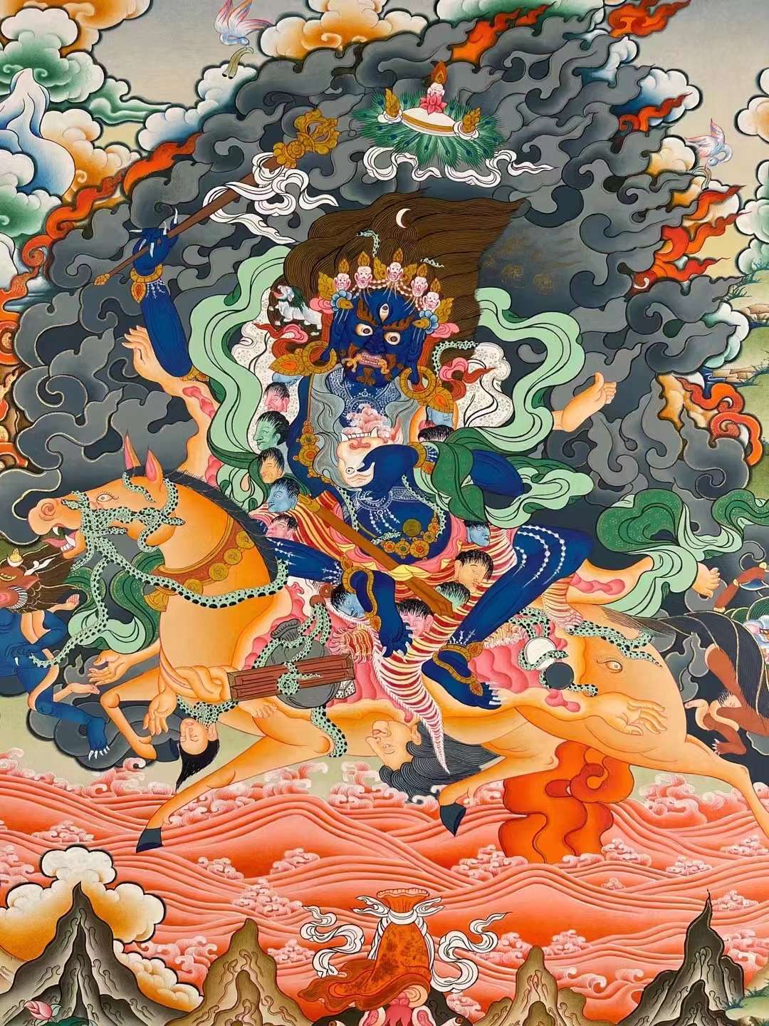 接下来请朋友们欣赏一组沃唐卡编号为155-940327的吉祥天母唐卡:
