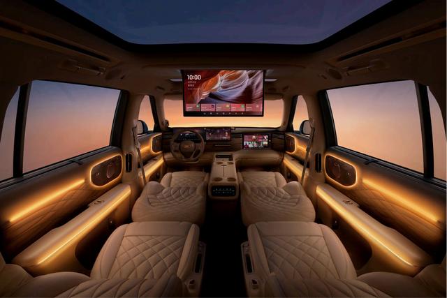 坐进车内,内饰的层次感很明显,还有不少留白设计,看着不压抑,氛围营造得不错。皮质多功能方向盘握感舒服,还标配了电动四向调节、记忆、加热功能,冬天开车的时候,打开方向盘加热,手再也不用冻得冰凉。方向盘采用电子式怀挡设计,操作起来很顺手,也节省了中控台的空间。值得一提的是,车内还标配抬头显示(HUD)、主动降噪和车载冰箱(支持加热、冷藏、冷冻),细节配置拉满。