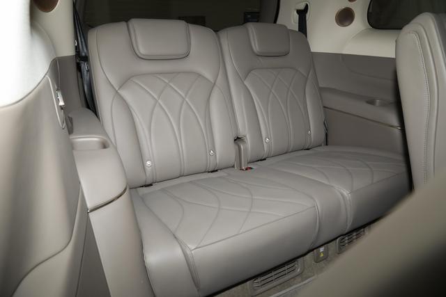 第二排独立座椅的配置很贴心,除了前后移动、靠背调节,还标配了加热、通风、按摩功能,冬天冻不着,夏天不闷汗,跑长途的时候开着按摩,能缓解不少疲劳。更惊喜的是,二排还标配零重力座椅和小桌板,实用性拉满。我妈上次坐二排,开着按摩功能,没一会儿就睡着了,醒了之后一个劲夸座椅舒服。第三排也没让人失望,虽然空间比不上前两排,但短途坐成年人完全没问题,春节带亲戚出门,偶尔坐两个人很合适,而且第三排还标配了加热功能,冬天坐也不觉得冷,这点考虑得很周到。