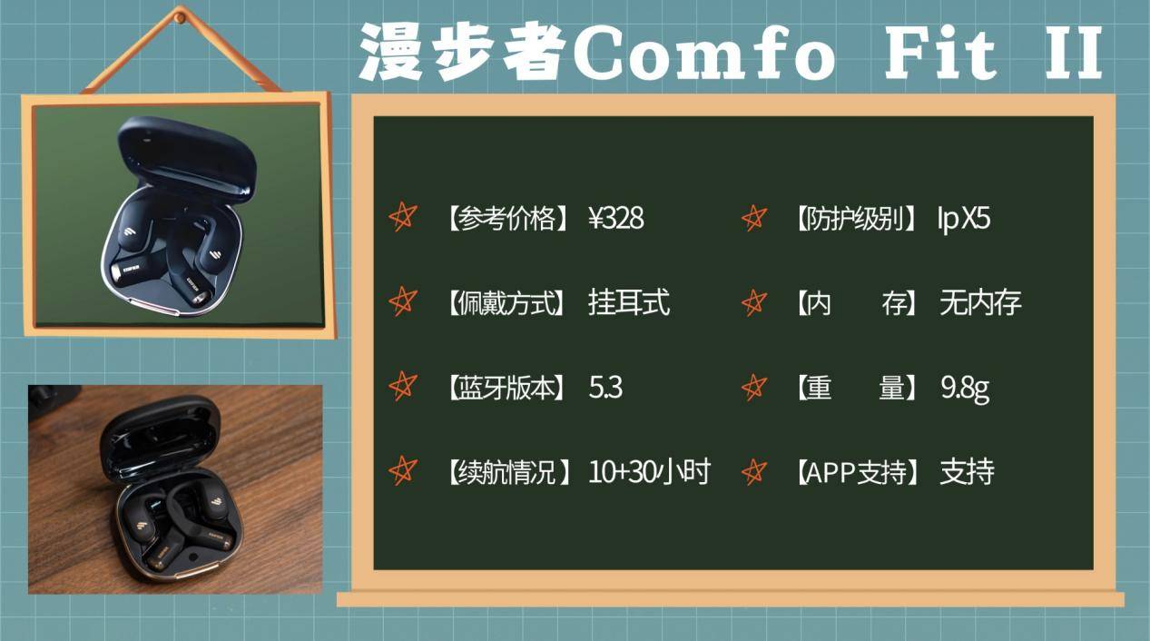 漫步者作为国内知名音频品牌,在耳机市场有丰富经验,Comfo Fit II在品牌中定位为注重舒适佩戴和长续航的日常/轻运动耳机,兼顾学习、办公和通勤场景。