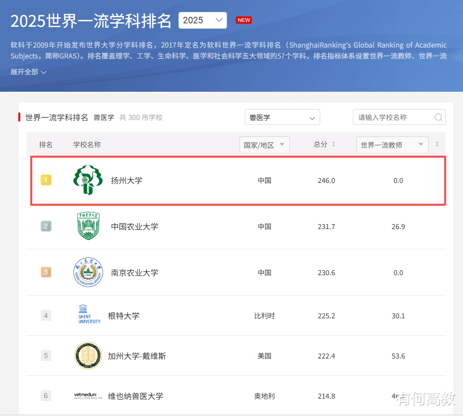 而在全球兽医教育的版图中,一个让人有些意外的名字最近登上了顶峰——它不是传统的农业类大学,而是来自一所综合性院校。近日,高等教育评价专业机构软科发布了2025“软科世界一流学科排名”,扬州大学的兽医学科以卓越实力斩获世界第一。这不仅是扬州大学首个全球冠军学科,也是扬州高校历史上第一个登上世界顶尖行列的学科,为这座城市的高等教育写下了浓墨重彩的一笔。