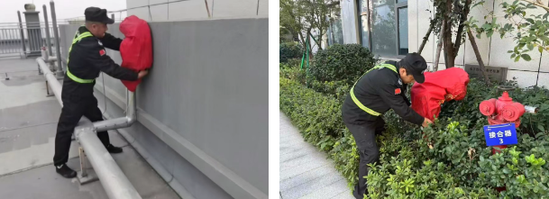 针对冬春低温严寒天气特性,物业团队提前制定防冻防护方案,及时为室外消防栓加装定制保温棉、包裹防护套,安排专人定时巡检维护,从源头杜绝管道冻裂、设备失效等安全隐患。