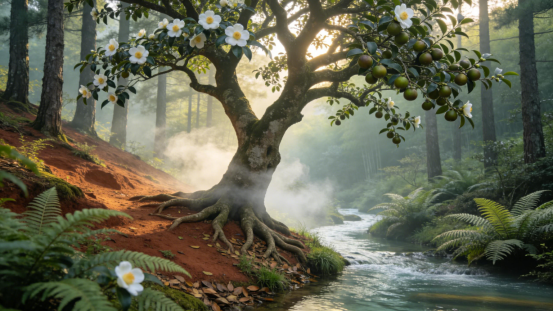 油茶文明的伦理精神,正发源于这种“以德为本”的传统。油茶树的生态属性——柔而不弱、清而不寒、恒而不倦——恰恰象征了“德”的自然形态。它不以夺取生存,而以滋养为道;不以生长取代他物,而以共生成全生态;不以速成取效,而以岁月积德。